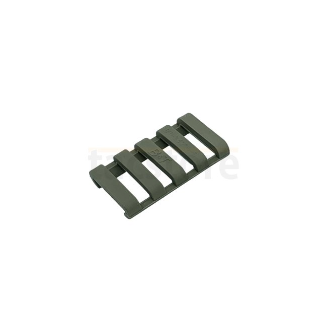 Couverture de rail en caoutchouc squelette courte B&T - Vert. Couleur verte, hauteur de 10.9mm, longueur de 45.2mm, matière en caoutchouc, numéro de pièce BT-21204-2, poids de 3.6g, largeur de 25.7mm. Résistant à la chaleur.