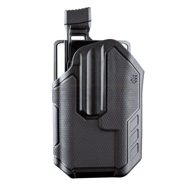 • Free-Floating Design – L’holster se bloque sur le boîtier de la lampe, ne porte pas le cadre et la finition de l'arme à feu