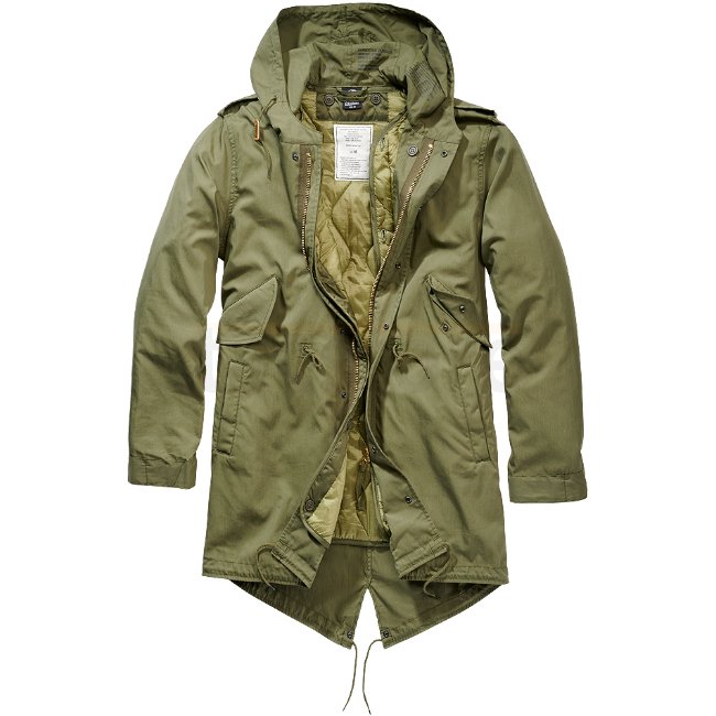 Restez au chaud et élégant avec le Parka M51 US de Brandit en Olive, taille L. Caractéristiques : design en queue de poisson, impression de style militaire, doublure thermique amovible et fermeture éclair de haute qualité.