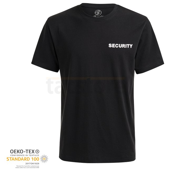 T-shirt de sécurité Brandit en noir - L. Petit imprimé SECURITY sur la poitrine et grand imprimé SECURITY dans le dos. Coton doux pour la peau pour un confort optimal. Col rond, manches courtes, 160g/m2. 100% coton.