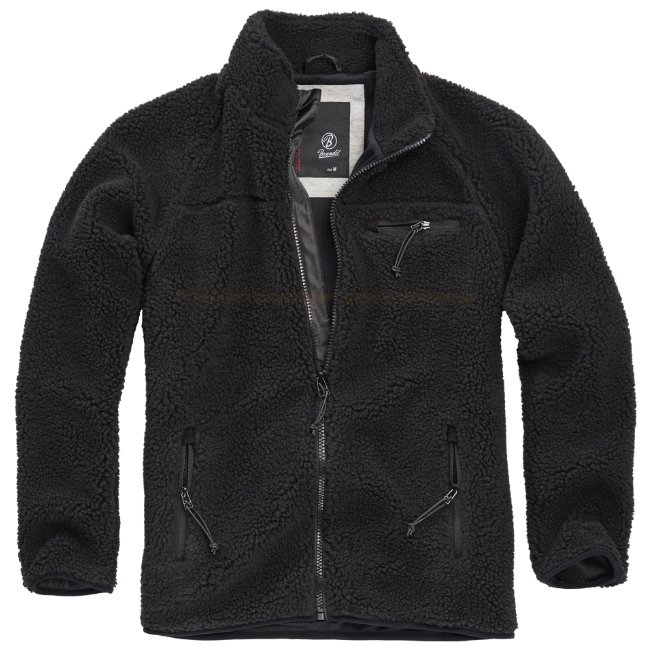 Veste en teddy polaire Brandit - Noir - L : Veste en teddy polaire à poils longs, chaude avec une haute isolation thermique, doublure respirante et fermeture éclair de haute qualité. Comprend un ajustement confortable, une protection de menton, un rabat d