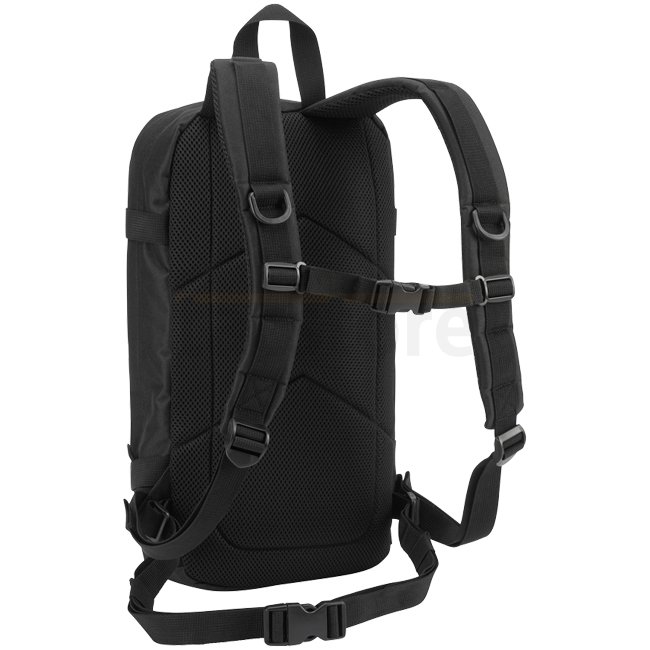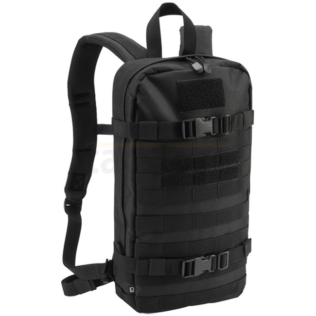 Sac à dos compact et durable avec système MOLLE, bretelles rembourrées, poche organisatrice avant, ceinture de hanches réglable et sangles de compression latérales. Possède des zones en Velcro pour personnalisation. Fabriqué en tissu 100% polyester enduit
