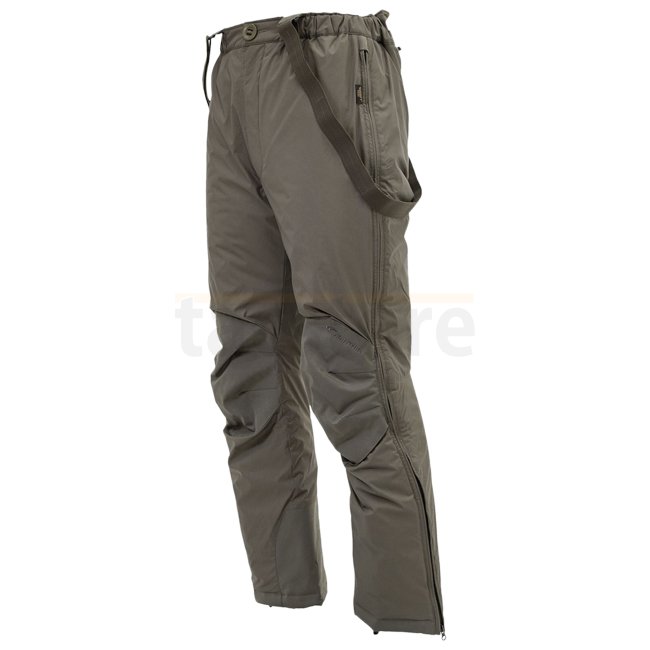 Pantalons Carinthia HIG 4.0 haute performance en olive - taille 2XL. Comprend des accessoires protégés, une zone de genoux renforcée, une isolation G-LOFT®, un tissu Gore Windstopper®, des bretelles ajustables et de multiples poches. Idéal pour les aventu