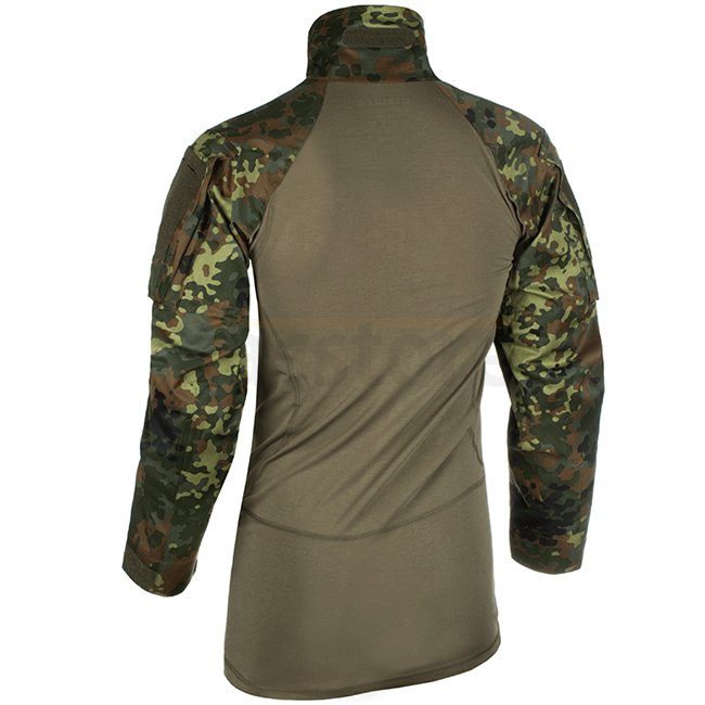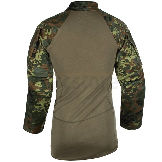 Spécialement conçue pour être portée sous une armure corporelle en situation de combat. Sa coupe anatomique offre un grand confort et évite les points de pression. Les manches et les poches des manches ont été entièrement repensées et présentent un design ergonomique et articulé pour encore plus de confort et de mobilité. Les zones de coude renforcées peuvent être équipées de coudières amovibles (disponibles en option). Le col zippé est conçu pour être porté en différentes variétés pour améliorer votre confort et pour éviter l'intrusion de poussière. La zone d'épaule est sans coutures, facilitant le transport de sac à dos, porte-plaque ou gilet de type "Chest Rig" sans points de pression.
