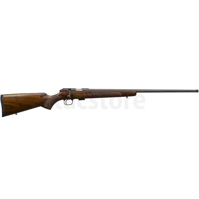 La CZ 457 American est une carabine à répétition à percussion annulaire, conçue pour les chasseurs et tireurs sportifs exigeant fiabilité et performance. Disponible en calibres .22 LR, .22 WMR et .17 HMR, cette carabine se distingue par sa précision exceptionnelle et son action de culasse fluide. La crosse en noyer de haute qualité, de style américain, est vernie et présente un quadrillage sur la poignée avec un motif de fleur de lys, offrant durabilité et une apparence classique raffinée.