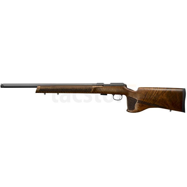 La carabine dispose d'une crosse ergonomique en noyer de qualité supérieure, offrant une prise en main confortable et une stabilité de tir améliorée. La détente réglable permet aux tireurs d'ajuster le poids et la course selon leurs préférences.