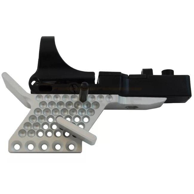 • Repose-pouce: Palette réglable de 16mm de large avec 15 trous pré-percés; peut être positionnée à des angles de 30° ou 45° selon les préférences de prise en main