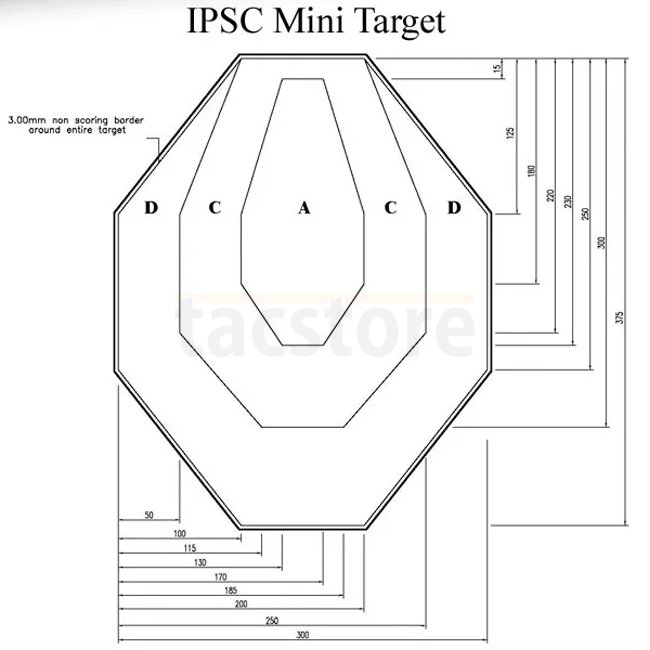 La cible en carton miniature au format 60 % de la taille standard IPSC est dotée d’un dos blanc – parfaite pour simuler des longues distances ou servir de cible pénalité.
