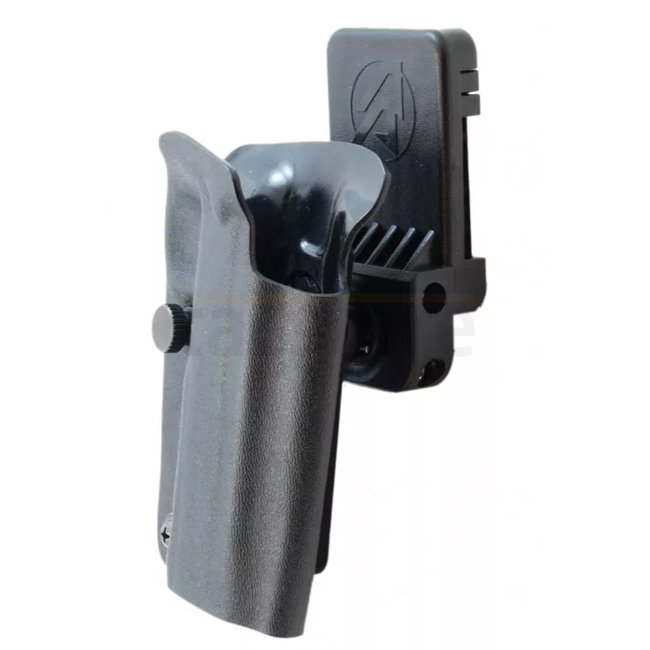 Le DAA PDR PRO-II est une évolution de la série PDR-PRO offrant plus de possibilités de réglage. Le rail en aluminium entre l’articulation et le corps du holster permet un ajustement en hauteur infini, même une fois monté. Le corps du holster a été affiné avec des parois plus fines, une couverture réduite et un dégagement plus rapide, tout en conservant le corps lisse non doublé et le support ceinture à articulation sphérique.