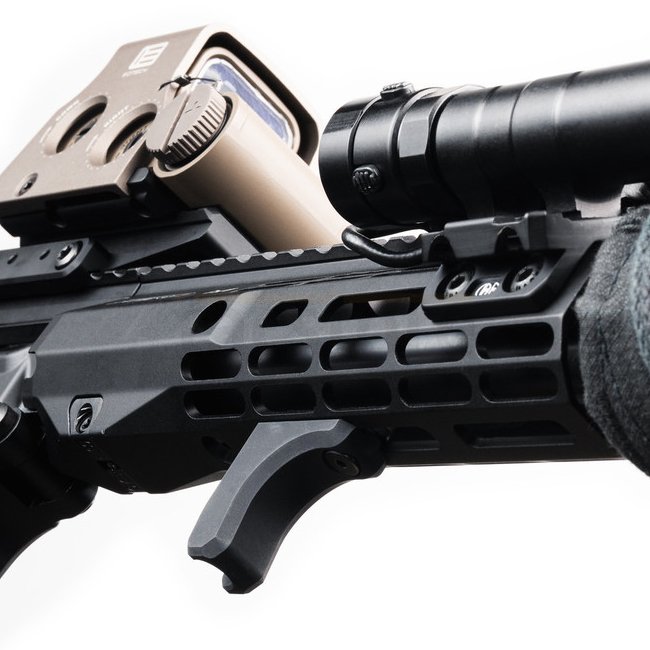 Contrôle amélioré dans diverses positions de prise, incluant C‑clamp et appui barricade. Profil compact garantissant légèreté et robustesse.