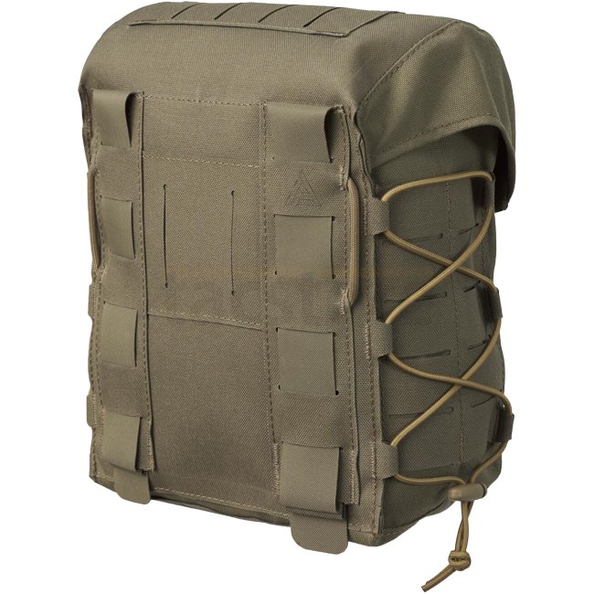 Une grande pochette polyvalente, conçue principalement pour être portée sur la partie arrière du manchon de ceinture modulaire MOSQUITO® ou d'une configuration de ceinture similaire. La capacité substantielle de la pochette permet d'emballer tous les éléments essentiels, et le col à cordon sécurise le contenu, tandis que le rabat à boucle éloigne la poussière ou la boue. Les nouvelles fonctionnalités incluent un système de découpe au laser compatible avec MOLLE/PALS sur le rabat du couvercle de la boîte fermé par boucle et une paracorde ajoutée sur les côtés pour réduire le volume vide ou pour attacher des objets. La pochette est non seulement compatible avec le système modulaire MOLLE/PALS mais peut également, grâce aux boucles en paracorde, être montée sur n'importe quelle ceinture d'arme jusqu'à 45 mm de large.