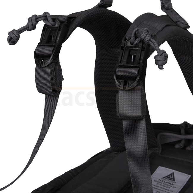 Des bretelles durables répartissent le poids de l'équipement transporté. Des points d'ancrage supplémentaires sur la base et sur les côtés ainsi que la construction renforcée de l'ensemble du sac à dos le rendent « sautable » pour les opérations dans les airs. Les fermetures éclair avant identiques à celles du panneau arrière SPITFIRE® permettent le montage de tous nos panneaux arrière, rendant le HALIFAX® encore plus évolutif.