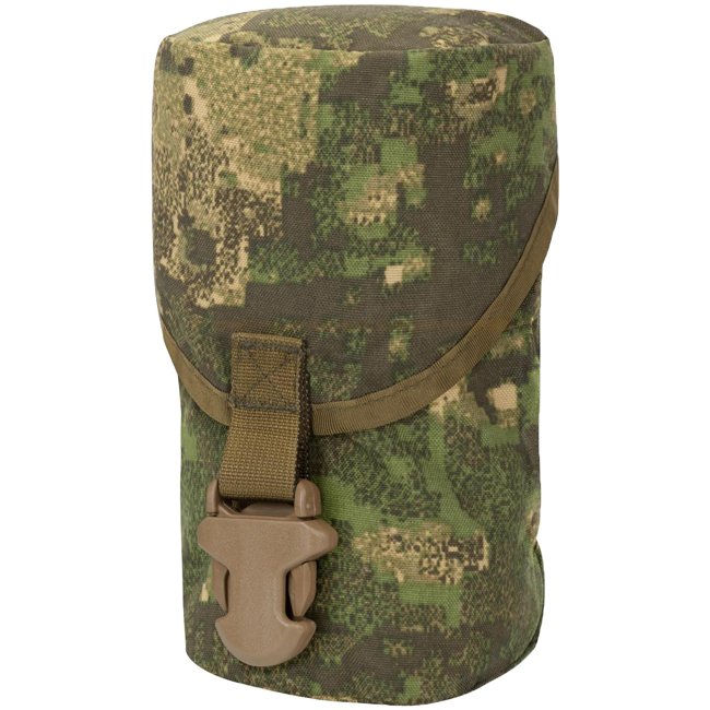 Pochette simple et légère conçue pour contenir des récipients à eau tels que la gourde USGI de 1 quart ou la bouteille Nalgene de 1 litre. Ajustable pour s'adapter à des récipients plus petits. Fabriquée avec du Cordura 500D et du laminate. Compatible PAL