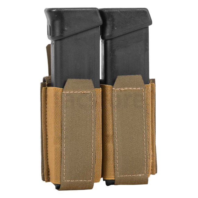 Gardez vos chargeurs de pistolet sécurisés et facilement accessibles avec la pochette de chargeur de pistolet profil bas Direct Action en brun coyote.