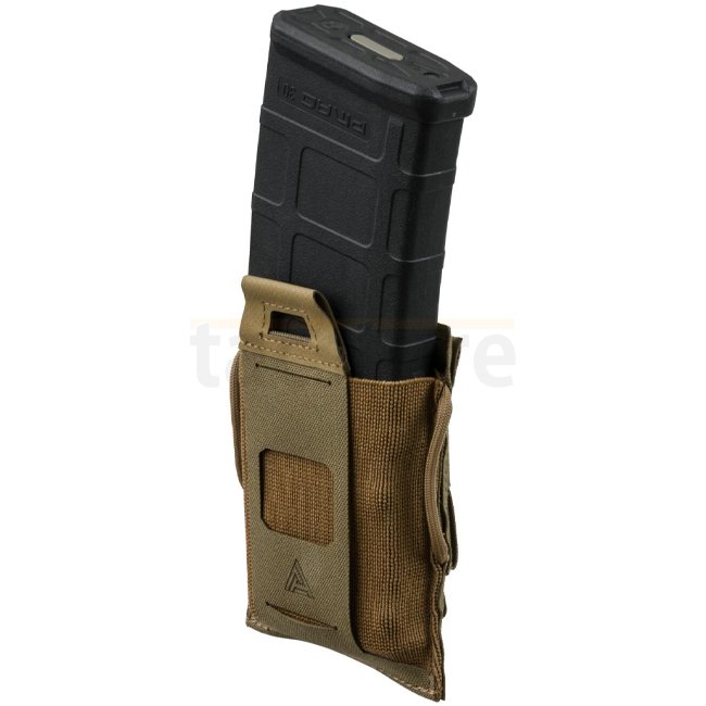 Porte-chargeur simple et plat Direct Action en vert Ranger. Fabriqué avec du Cordura® 500D durable et du stratifié en Nylon 210D, ne pesant que 35g. Parfait pour tenir vos magazines en toute sécurité avec des dimensions de 8,5 x 11,5 mm.