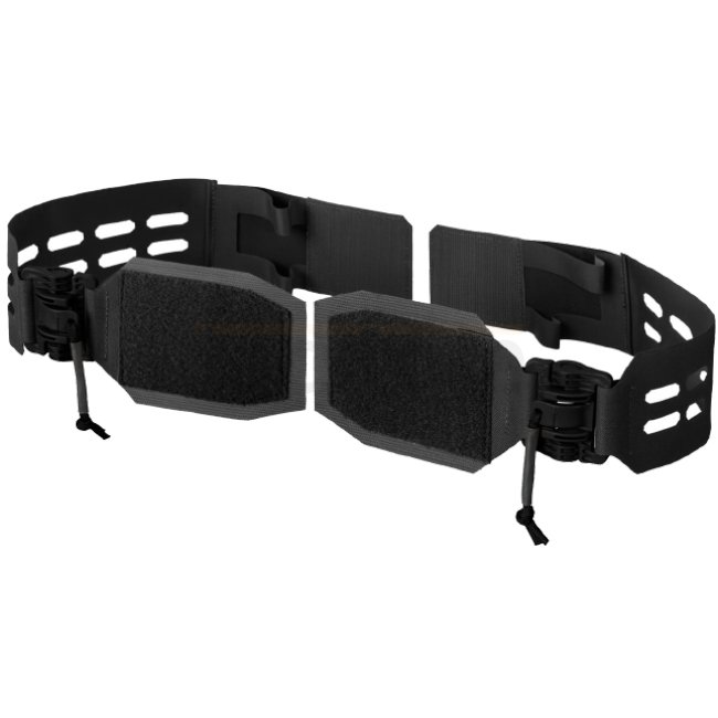 Cummerbund ultraléger squelettisé et mince pour porte-plaque, doté de boucles ROC de 40mm pour un port facile. Design compatible MOLLE/PALS découpé au laser. 100% nylon, 105g, hauteur de 7.5cm, disponible en longueurs M 54cm et L 58cm.