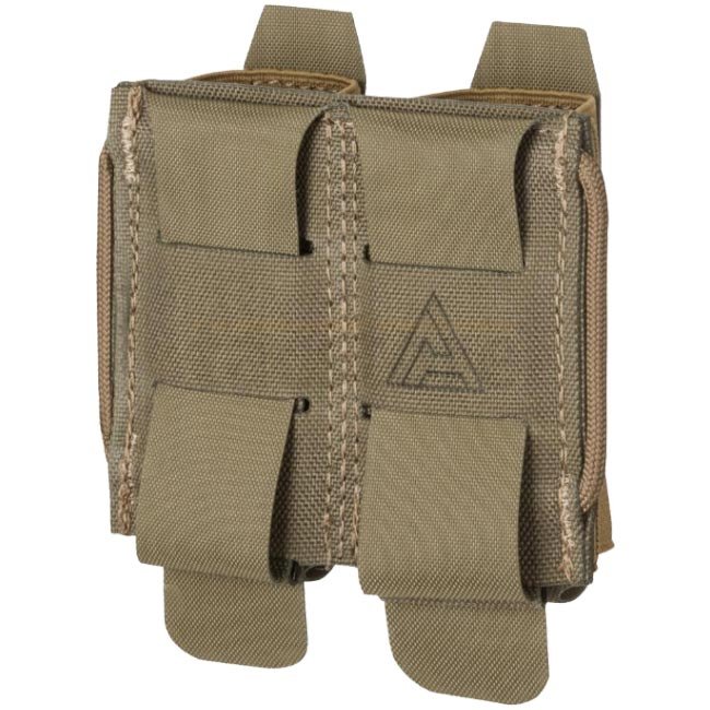 Poche pour chargeur de pistolet Direct Action Slick - Woodland : Poche profil bas pour deux chargeurs à double empilage. Fabriquée en stratifié propre à l'entreprise et en sangle élastique pour une surface lisse. Compatible avec MOLLE/PALS et peut être mo