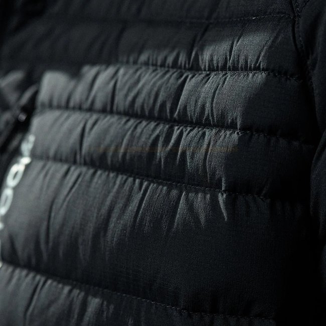 Un cordon de serrage à deux points au niveau de la taille permet un ajustement précis et un maintien optimal de la chaleur. La veste peut être repliée dans sa propre poche droite, ce qui la rend facile à transporter ou à ranger en déplacement.