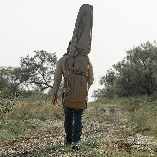 Le Eberlestock Sniper Sled Drag Bag 57" est une version allongée du célèbre modèle E2B, conçu pour transporter des fusils plus longs comme le Barrett L82A1M entièrement assemblé. Son design unique à triple pli et conique permet de l'étendre à plat en tant que tapis de tir, le troisième panneau servant de séparateur interne, accueillant deux fusils en toute sécurité.