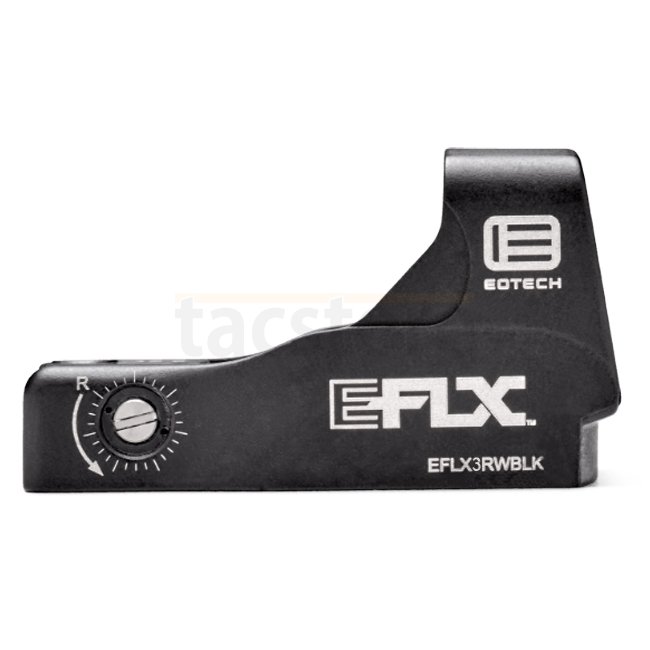 L'EFLX™ est la première entreprise d'EoTech dans le domaine de l'optique à technologie réflexe. Conçue pour une utilisation au pistolet, la base est configurée selon l'empreinte Leupold® Delta Point Pro™ et s'adaptera aux glissières fraisées de manière appropriée ou sur un adaptateur de montage arrière en queue d'aronde. Son boîtier en aluminium durable et robuste offre une grande fenêtre de visualisation carrée, qui conserve le même rapport d'aspect que le HWS d'EoTech, pour rendre le point de visée 3 ou 6 MOA facile et rapide à trouver. Une seule batterie CR2032 à chargement par le haut fournit environ 20'000 heures d'autonomie. Idéal pour un usage professionnel pour vous permettre d'atteindre rapidement votre objectif ; application de la loi, chasse, défense, etc., l'EFLX peut être utilisé sur une variété de plates-formes de pistolet. En plus d'être la solution idéale pour un viseur à point rouge de pistolet, l'EFLX peut être utilisé comme solution 1x sur des fusils de chasse ou des carabines.