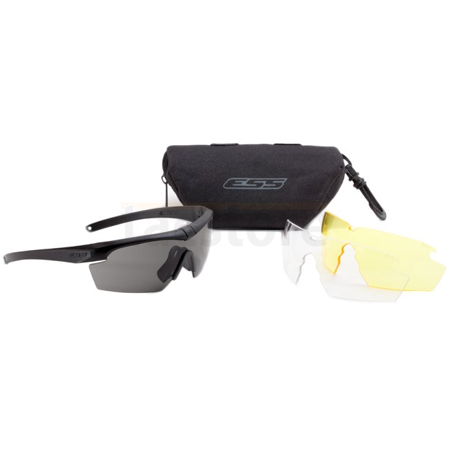Le kit ESS Crosshair 3LS en noir est un kit de lunettes durable avec protection balistique, conforme aux normes MIL SPEC et ANSI Z87.1-2010 des États-Unis. Offre une protection 100% UVA/UVB.