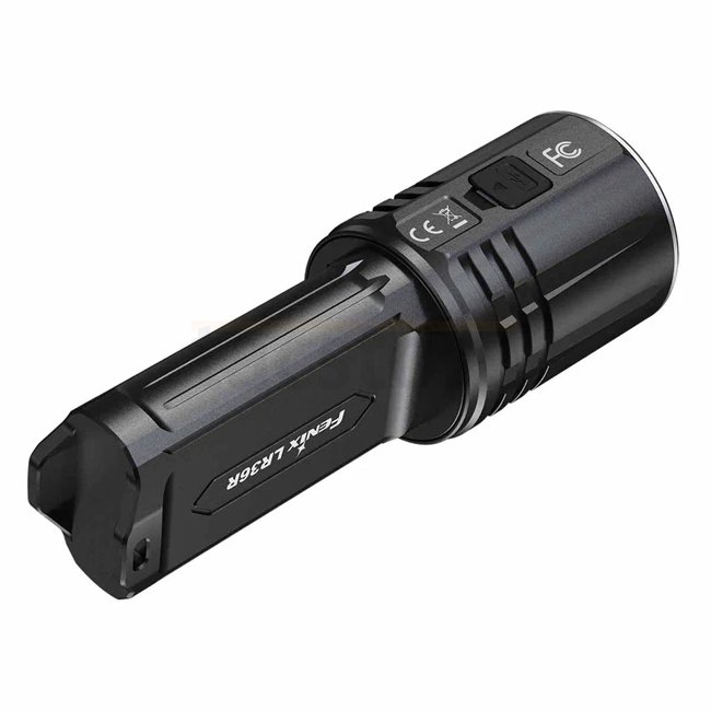 La Fenix LR36R combine un module LEP blanc avec un projecteur (12 LED). Elle offre une portée laser de 1 260 mètres et dispose d’un bouton rotatif pour ajuster la luminosité sans paliers. Alimentée par deux accus 21700, elle est rechargeable via USB‑C.