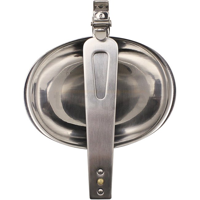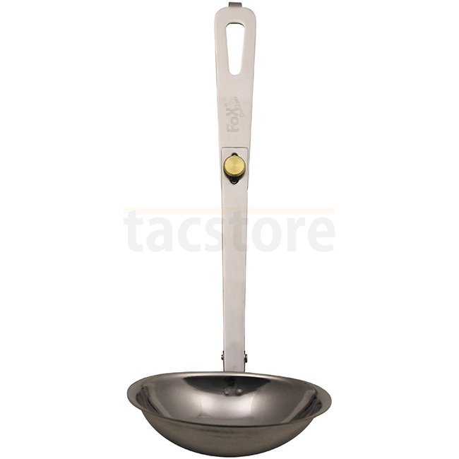 Cuillère en acier inoxydable pliable avec œillet de suspension et crochet. Longueur dépliée : 26 cm, pliée : 13 cm. Taille de la cuillère : 10 x 7,5 x 3 cm (L x l x H). Légère à 120 g. Fabriquée en acier inoxydable à 100 %.