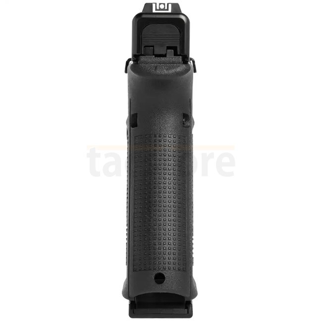 - Design crossover avec culasse Glock 19 et cadre Glock 17.