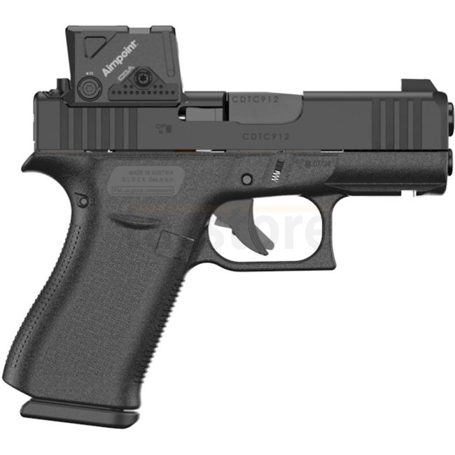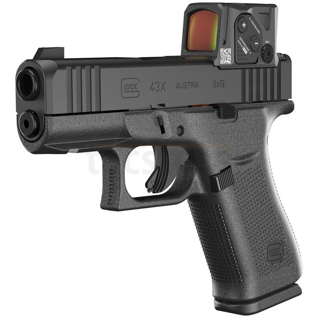 Le GLOCK 43X A-CUT™ COA™ Combo associe le pistolet Slimline G43X fiable avec le viseur point rouge avancé Aimpoint™ COA™. Ce modèle est doté d'une culasse subcompacte et d'une carcasse compacte, ce qui le rend idéal pour le port dissimulé. L'interface Aimpoint A-CUT™ permet de monter directement le viseur COA™ sur la culasse sans adaptateur, garantissant ainsi une configuration basse et stable.