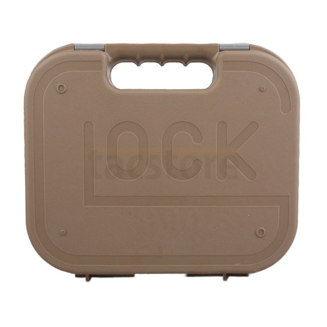 Mallette rigide GLOCK en couleur Coyote, fabriquée en polymère durable avec rembourrage en mousse pour une protection optimale.
