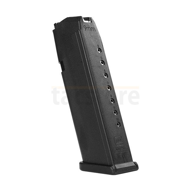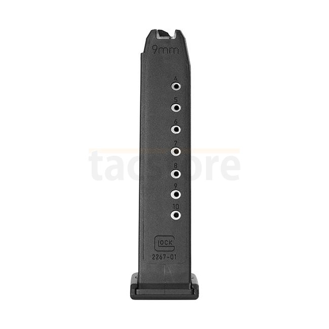 Conçu pour le Glock 17, ce chargeur 9mm de 10 coups avec suiveur noir offre des performances fiables, idéal pour des capacités limitées ou conformes aux réglementations.
