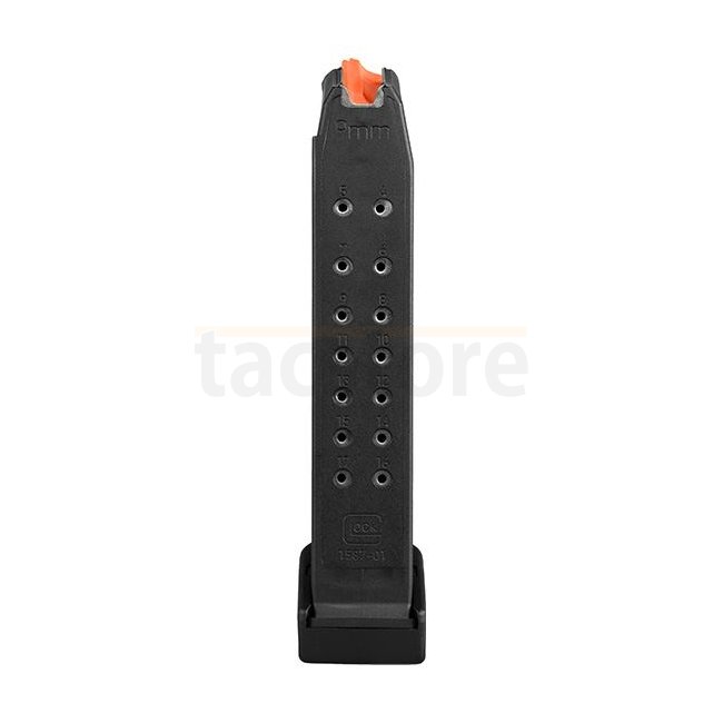 Améliorez votre Glock 17 avec ce chargeur 19 coups 9mm, doté d'un suiveur orange pour une meilleure visibilité et fiabilité lors de sessions de tir prolongées.