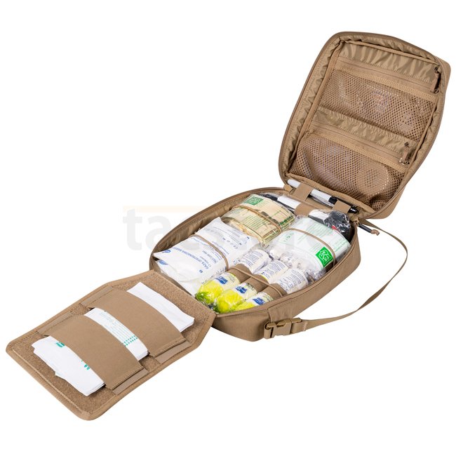 L'automotive Med Kit a été conçu comme la trousse de premiers soins principale pour véhicules. Sa forme compacte et plate lui permet de s'insérer sous les sièges, dans les portes latérales ou les poches de siège, tandis que l'absence d'arêtes vives empêche les accrocs. La partie avant du kit médical comporte un large panneau de velcro à boucle pour un marquage individuel, avec un panneau réfléchissant pour une identification rapide. Les poignées sont également marquées d'un ruban réfléchissant pour faciliter leur recherche avec un minimum de lumière. Grâce à une bandoulière détachable, le kit médical peut être porté comme un sac bandoulière.