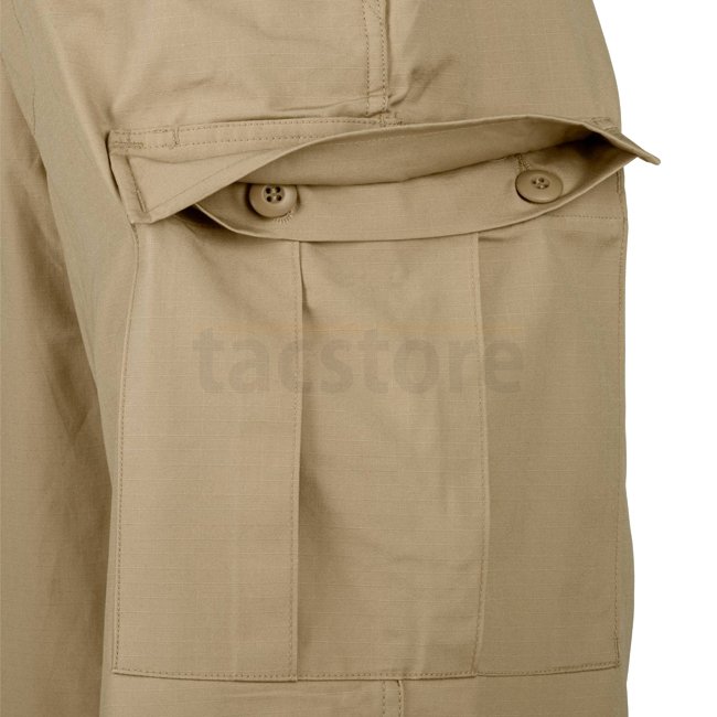 Les Shorts BDU Helikon-Tex en Khaki, taille XS, sont parfaits pour les temps chauds. Fabriqués en 100 % coton, ils disposent d'une taille ajustable, d'un siège renforcé, de poches avant et arrière, ainsi que de poches cargo sur les cuisses avec des rabats