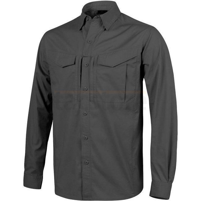 Chemise Helikon-Tex Defender Mk2 - Noire - L. Chemise tactique urbaine à manches longues pour officiers de loi, opérateurs, personnel de sécurité et individus actifs. Tissu respirant, séchage rapide, coupe anatomique, col qui ne remonte pas, porte-ombre,