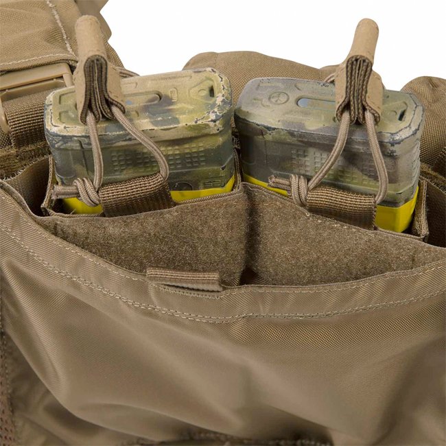 Le Guardian Chest Rig est une plate-forme de transport universelle pouvant accueillir une charge de munitions de base et un équipement personnel. Conçu pour fonctionner avec un sac à dos et un kit de ceinture. En fonction de la taille des magasins, la hauteur des rabats des poches fixes peut être ajustée. Les inserts de magasin interchangeables peuvent également être réorganisés en conséquence.