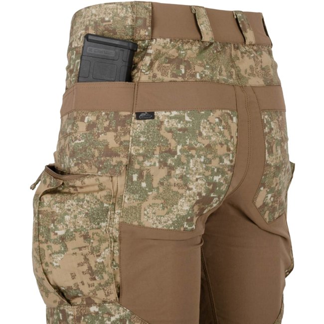 Pantalons tactiques hybrides Helikon-Tex en NyCo RipStop dans le motif PenCott WildWood présentent un design hybride unique de tissus ripstop et softshell pour un confort et une durabilité supérieurs. Ces pantalons dédiés aux tireurs offrent une liberté d