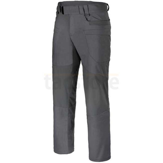 Pantalons tactiques hybrides Helikon-Tex en gris ombre, 3XL-Long. Design dédié aux tireurs avec des tissus ripstop et softshell pour le confort et la durabilité. Construction hybride, taille à crochets et boucles, entrejambe renforcé, 6 poches latérales,