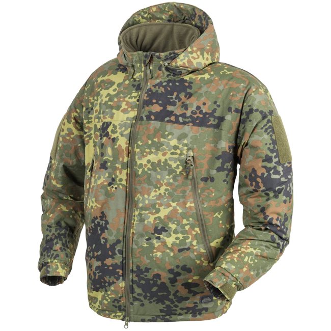 Cette veste d'hiver Helikon-Tex Level 7 Climashield en Flecktarn, taille 3XL, est une couche externe entièrement isolée avec isolant Climashield® Apex™, vous gardant au chaud et au sec dans des conditions de froid extrême. La couche extérieure en nylon of