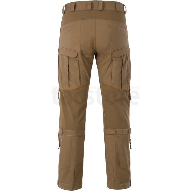Des inserts en matériau Versastrech ont été utilisés dans les zones clés (taille, entrejambe et arrière des genoux). Il sèche rapidement et est hautement respirant. La zone des genoux est renforcée avec du tissu Cordura 500D avec des fentes pour inserts de protection. Grâce à des cordons supplémentaires situés sous le genou et en bas de jambe, le pantalon peut être facilement ajusté à la jambe.