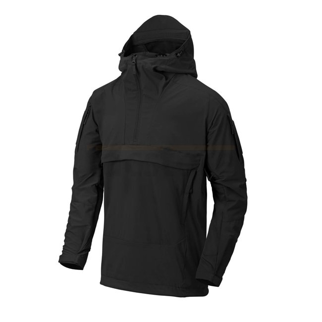 Restez protégé des éléments avec la veste Anorak Mistral de Helikon-Tex. Fabriquée en tissu StormStretch avec une zone de velcro pour la personnalisation, cette veste noire dispose d'une grande poche kangourou, d'une capuche ajustable, de poches pour les