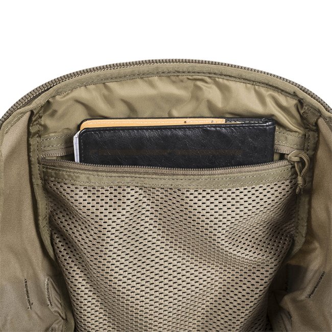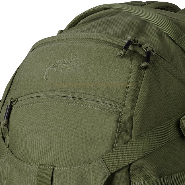 Sac à dos Helikon-Tex Raider - Olive : Sac à dos durable en Cordura avec panneau ID velcro, fermetures éclair YKK, capacité de 20L, housse de pluie, système MOLLE, et crochet pour poche d’hydratation. Idéal pour les aventures en plein air.