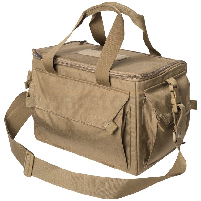 Sac de tir multifonction Helikon-Tex en couleur Coyote, fabriqué en tissu Cordura résistant. Comprend un compartiment principal avec doublure en velcro, fermetures éclair YKK et une capacité de 18l. Dimensions 350x255x200mm ; poids 1930g.