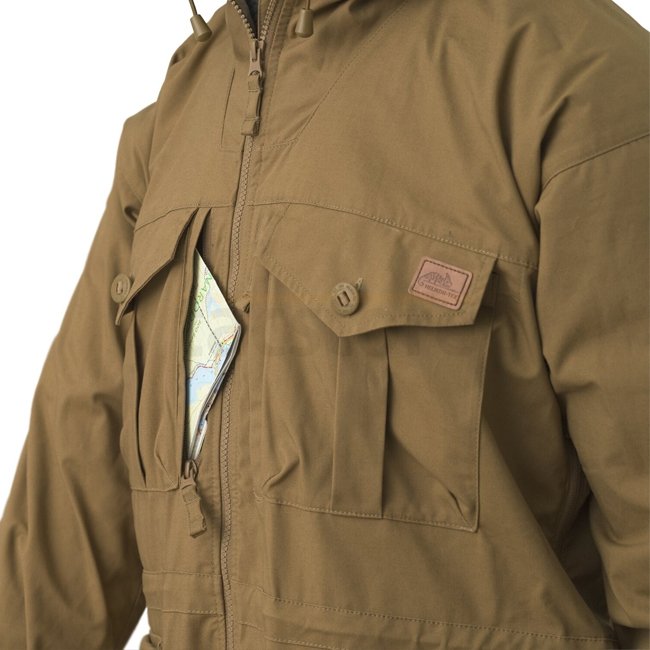 La veste smockée militaire revient dans une version améliorée. Helikon a conservé les éléments classiques mais les a enrichis, de sorte que le style vintage va de pair avec la fonctionnalité. Le SAS Smock est entièrement zippé et comble le vide entre deux anoraks de l'offre Helikon-Tex : l'Anorak Pilgrim Jacket, plus lourd et plus avancé, et l'Anorak Woodsman Jacket plus léger. L'ensemble de la blouse est fabriqué en matériau Duracanvas adapté au fartage et augmente la protection contre la pluie légère et la neige.
