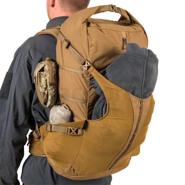 Sac à dos Helikon-Tex Summit - Noir : Tissu Cordura léger, bretelles profilées, fermetures éclair YKK, fermeture rolltop, poches latérales en filet, capacité de 40l. Dimensions : 550x310x200mm. Poids : 1300g.