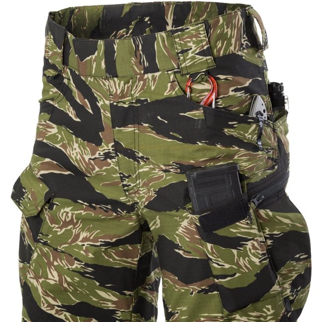 Pantalons tactiques urbains Helikon-Tex - Ripstop en polycoton extensible - Rayures tigre - S - Long. Taille élastique avec fermeture velcro, passants de ceinture de 50 mm de large, poches avant renforcées, poches cargo, poches pour smartphone/revue AR, c