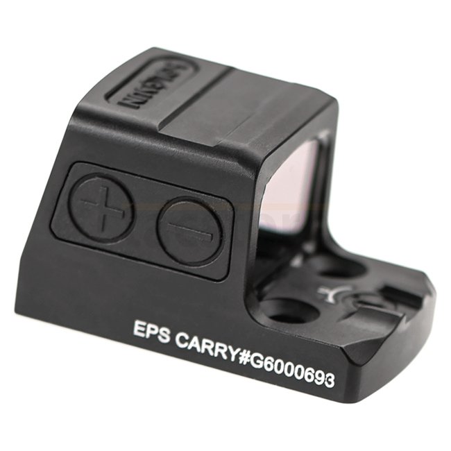 Holosun EPS Carry avec point vert de 6 MOA - Noir. Grossissement 1x, réticule à point de 6 MOA, niveaux de luminosité verte, ajustement maximal de l'élévation et de la dérive de 30 MOA, design compact : 41x24x27mm, léger à 28g. Inclus empreinte Holosun 50