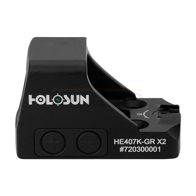 Le Holosun HE407K X2 Mini Green Dot Sight est une optique de type pistolet avec un cadre ouvert pour une large vue, avec du verre transparent et un boîtier robuste en aluminium 7075. Il est alimenté par une pile CR1632. Le HE407K X2 fonctionnera jusqu'à 10 ans avec une seule batterie au réglage 6. Il est équipé de la technologie Shake Awake de Holosun avec rappel du dernier réglage. Cette optique a toutes les caractéristiques dans un petit paquet dur.