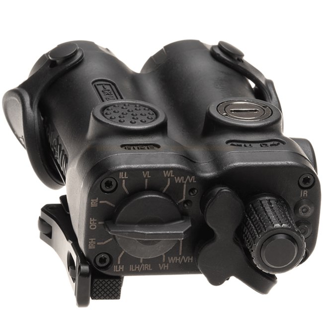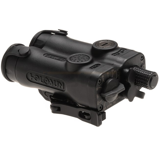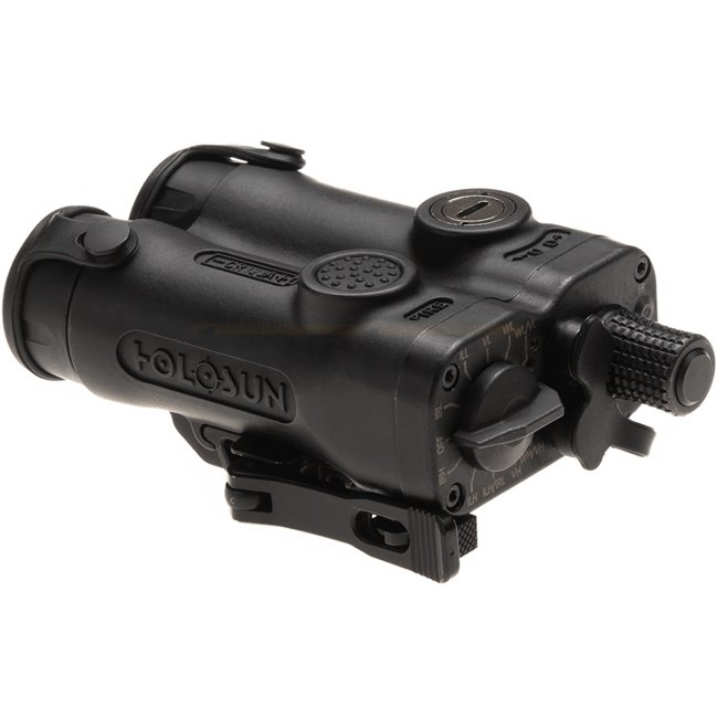 Holosun LE321-RD Elite Multi-Laser Device : Dispositif multi-laser intégrant un laser rouge, un laser IR et un illuminateur IR avec sélecteur de mode. Lasers coaxiaux pour ajustement synchrone. Bouton de mise au point de l'illuminateur IR à l'arrière. Mon