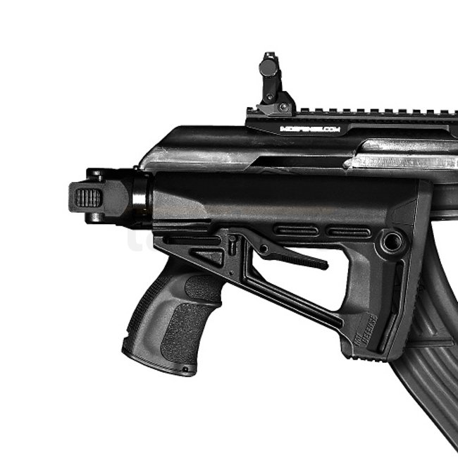 L'IMI Defence MAK2 est un adaptateur de crosse pliante en composé polymère renforcé de fibres de haute qualité, conçu comme une mise à niveau facile pour la crosse fixe standard AKM 47/74 d'origine vers une crosse repliable Milspec M16/M4. Avec l'adaptateur IMI Defence MAK2 installé, la plupart des stocks pliables de type M4 peuvent être attachés à votre AKM, offrant 6 positions pour changer la longueur de traction souhaitée.